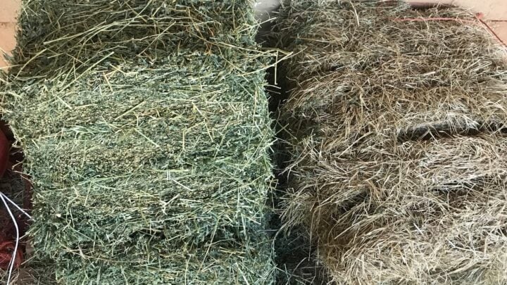 - Soft, fresh-smelling hay: Higher protein.