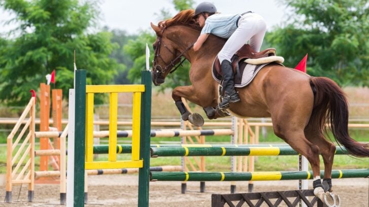 So if you’re considering redecorating the walls, or obstacles for your horse, be sure to choose the right colors that will be easy on your horse’s eyes!