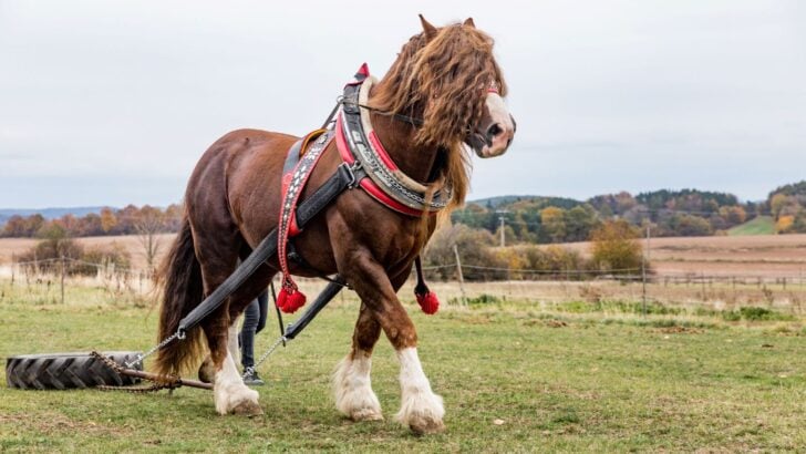 The Shire is what most people picture when they think of a massive horse. Developed in England’s Midlands, these horses trace their lineage to medieval “great horses” that carried armored knights into battle. Despite weighing as much as a small car, Shires move with surprising grace.